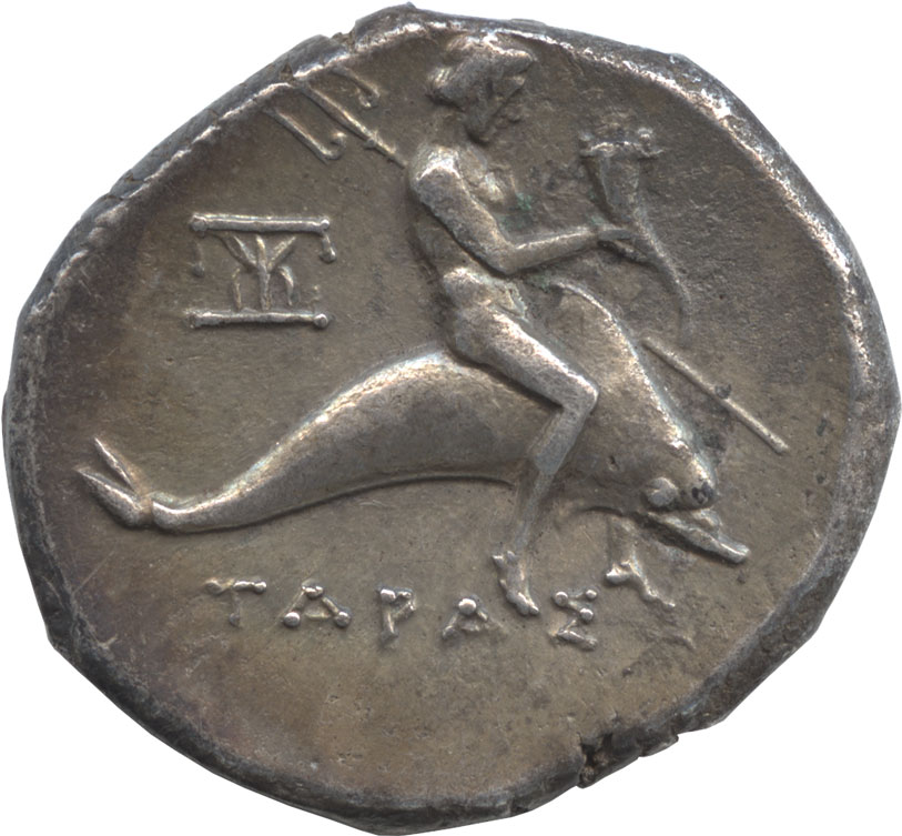 - 古代ギリシャ カラブリア・タラス ノモス銀貨 275-235B.C.発行 トーン・準未使用~未使用品