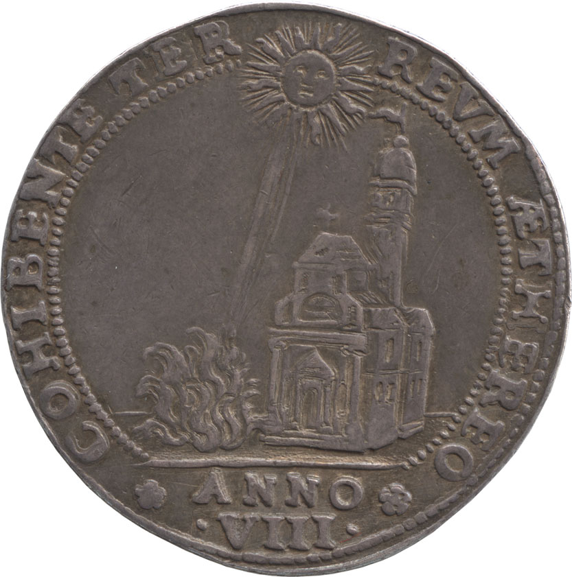 裏:教会の前の地面から湧き出た炎に光線をあてる太陽