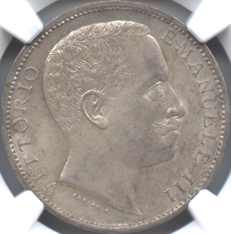 イタリア 2リレ銀貨 1904(R) ヴィットリオ・エマヌエル3世(1900-1946) NGC-MS64+ 完全未使用品 【希少年号・希少品】