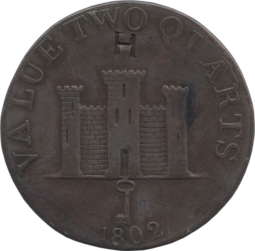 ジブラルタル 2クゥォーツ銅貨 1802 ジブラルタル島景観 カウンタースタンプ:H