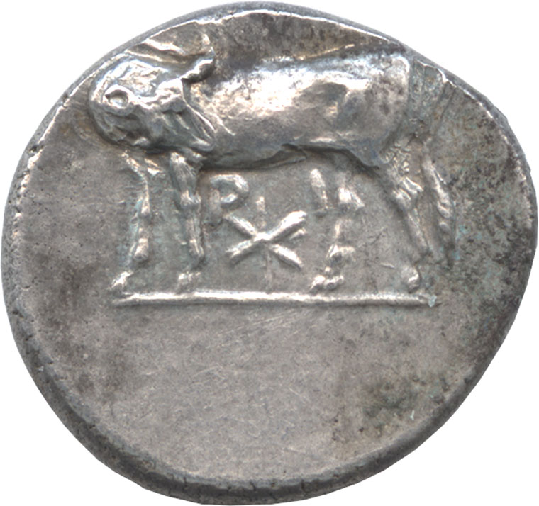 紀元前350年~300年ごろに発行されたヘミドラクマ(1/2ドラクマ)銀貨