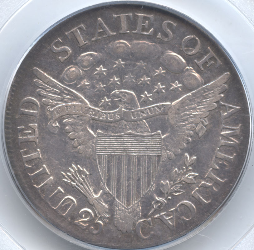 1796年から1807年まで発行された25セント銀貨で、表に女神右向き胸像と周囲に13個の星が描かれています。