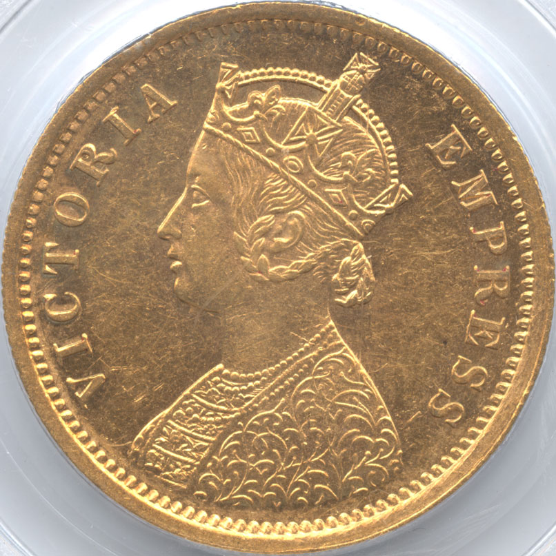 - 英領インド 1モハール金貨 1882 ヴィクトリア(1837-1901) PCGS-AU55 極美品