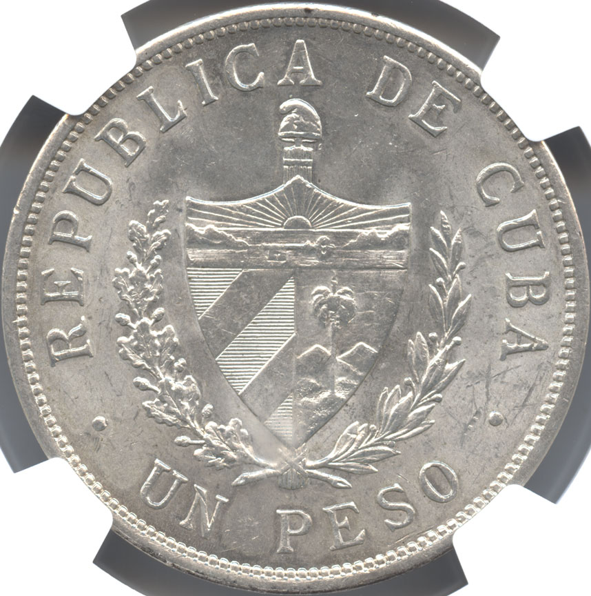 - キューバ 1ペソ銀貨 1934 スターペソ NGC-MS63 未使用品