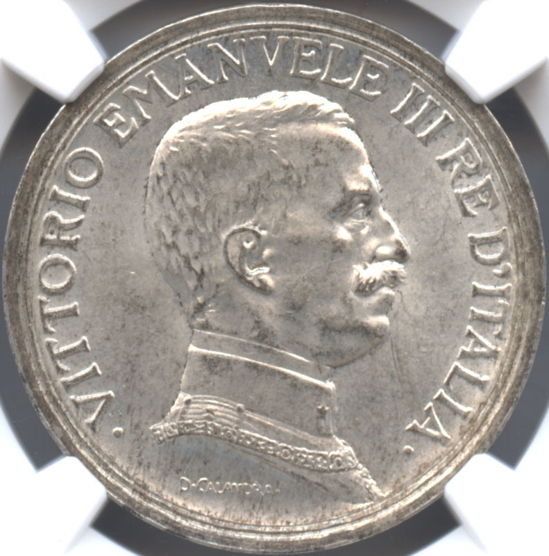イタリア 2リレ銀貨 1915(R) ヴィットリオ・エマヌエル3世(1900-1946) クァドリガ NGC-MS64