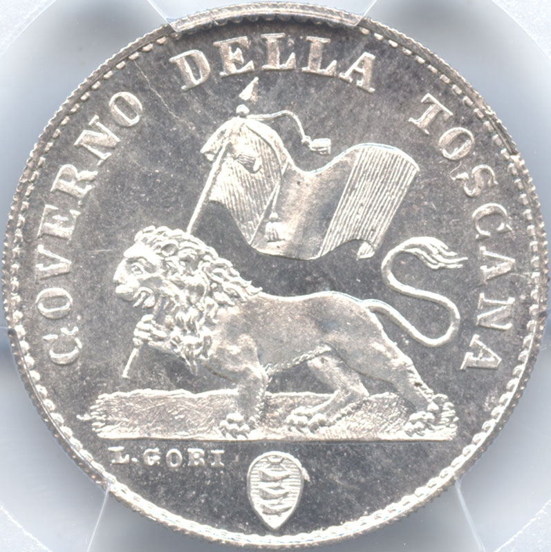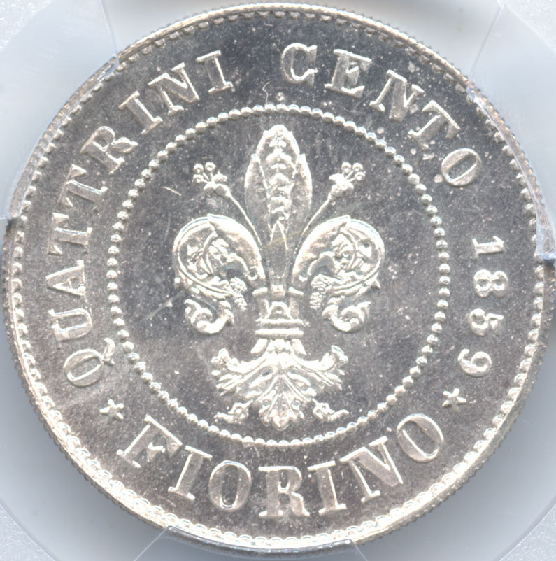 - イタリア トスカーナ大公国 1フィオリーノ銀貨 1859 PCGS-MS66 【最高鑑定品・Top Pop】