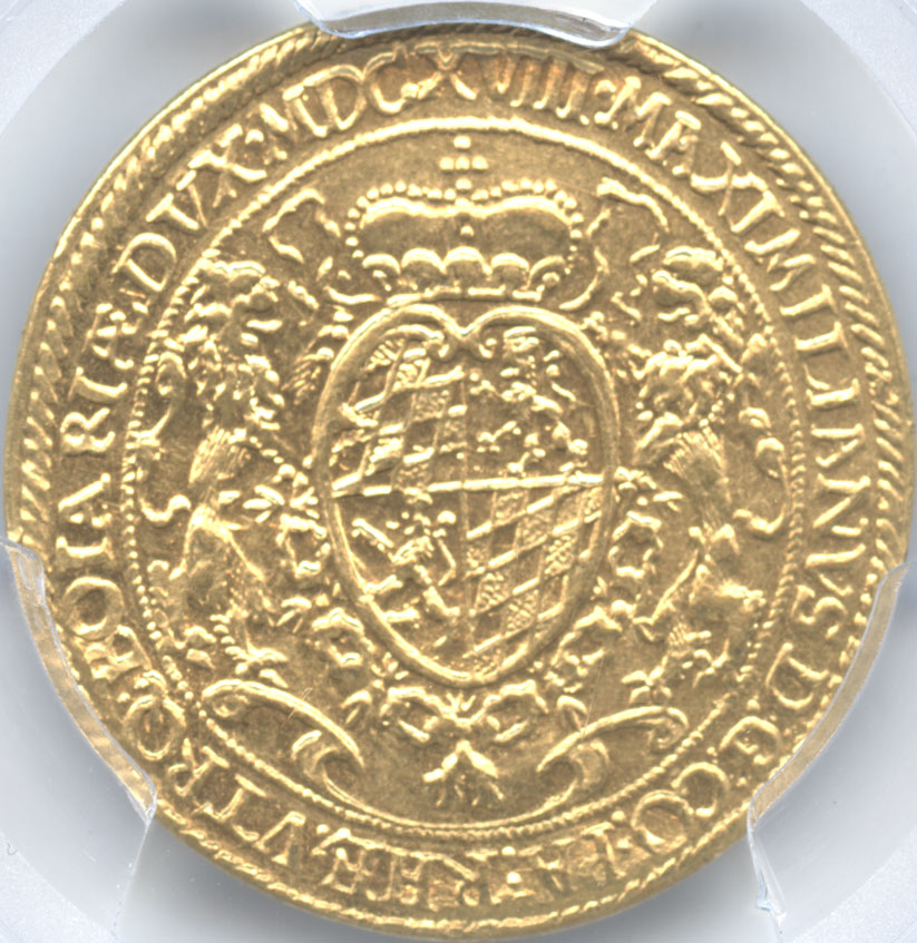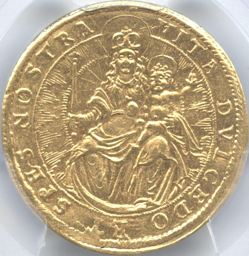 - ドイツ バイエルン(ババリア) 2ダカット金貨 1618 マキシミリアン1世(1598-1651) 祝福の光を浴びる聖母子像 PCGS-MS63