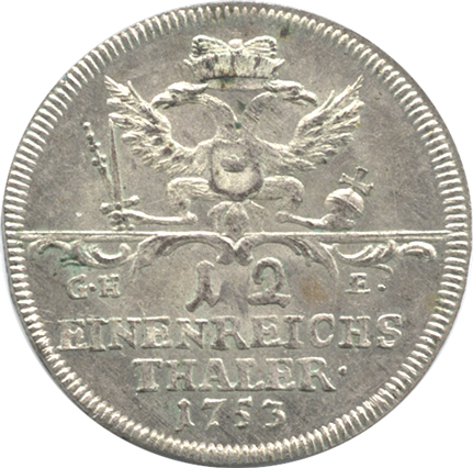 - ドイツ シャフルツブルグ・ルドルシュタット 1/12ターレル銀貨(ドッペル・グロッシェン) 1753 未使用品