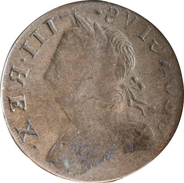 【影打】 イギリス 1/2ペニー銅貨 N.D.(1770-1775) ジョージ3世(1760-1820)