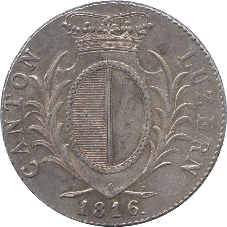 - スイス ルッツェルン 40バッツェン銀貨 1816 カントンテーラー トーン・極美品
