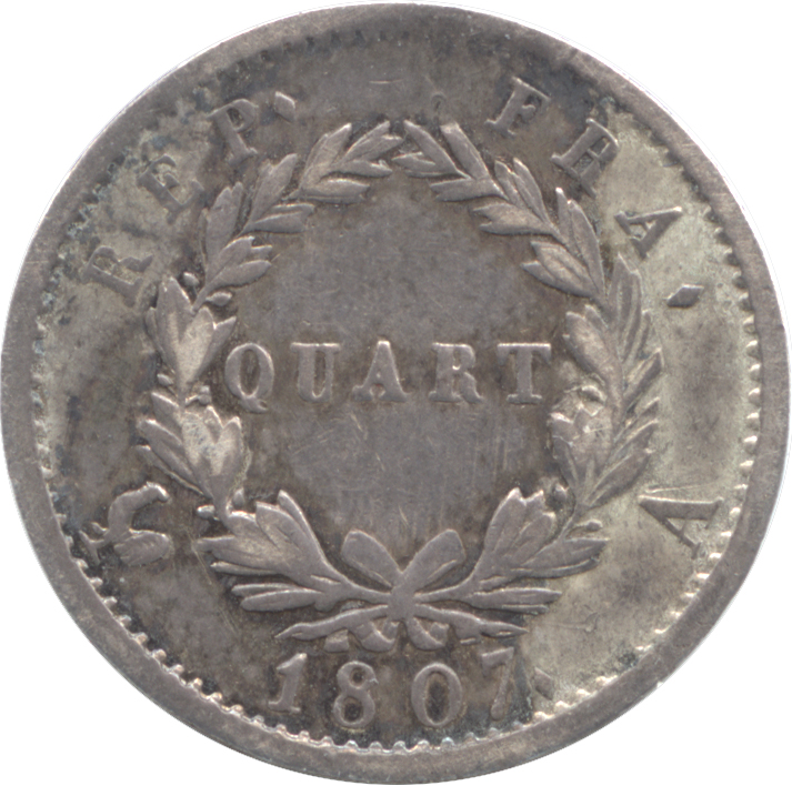 商品は1807年にフランス・パリで発行された1/4フラン銀貨です。
