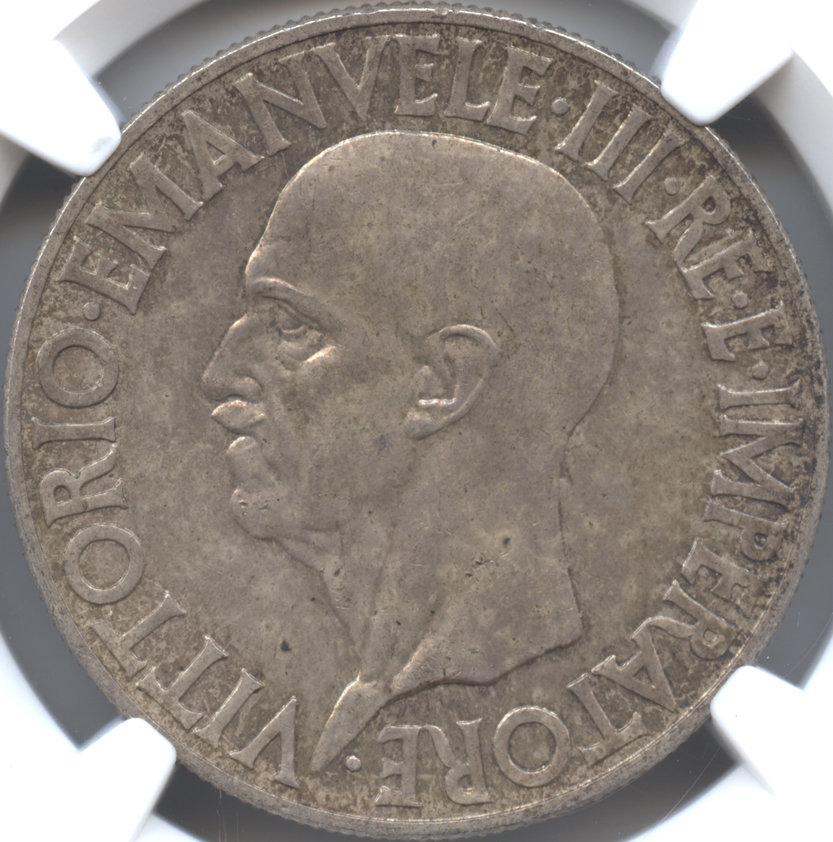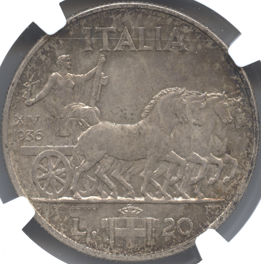 イタリア王国 20リレ銀貨 1936(R) ヴィットリオ・エマヌエル3世(1900-1946) クァドリガ NGC-UNC DETAILS