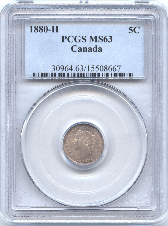 カナダ 5セント銀貨 1880(H) ヴィクトリア(1837-1901) PCGS-MS63