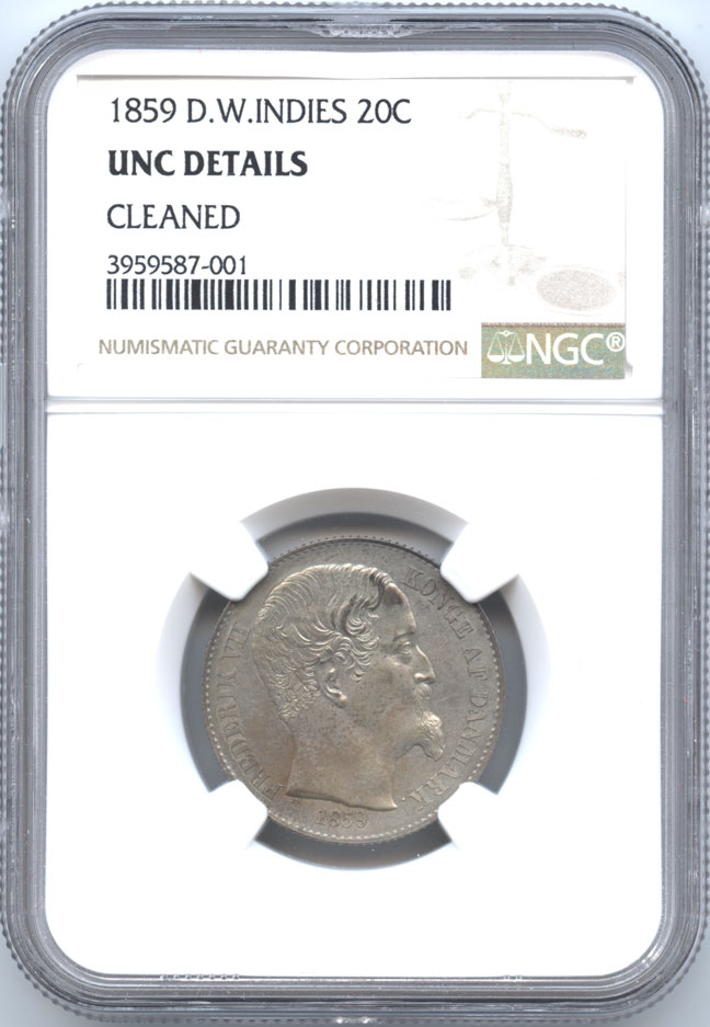 デンマーク領西インド 20セント銀貨 1859 フレデリック7世(1848-1863) NGC-UNC DETAILS