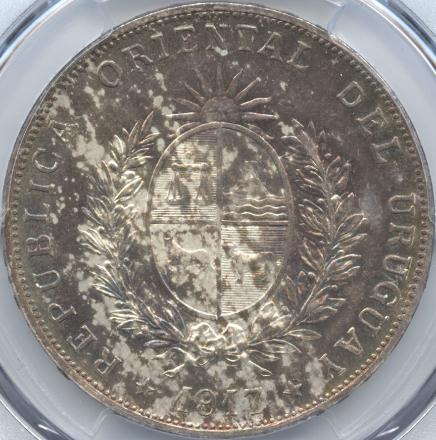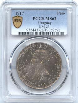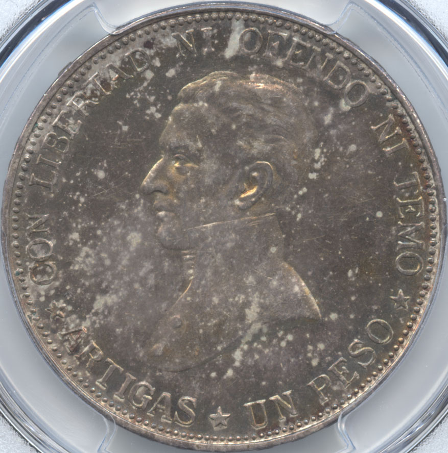 ウルグアイ 1ペソ銀貨 1917 ホセ・アルティガス PCGS-MS62