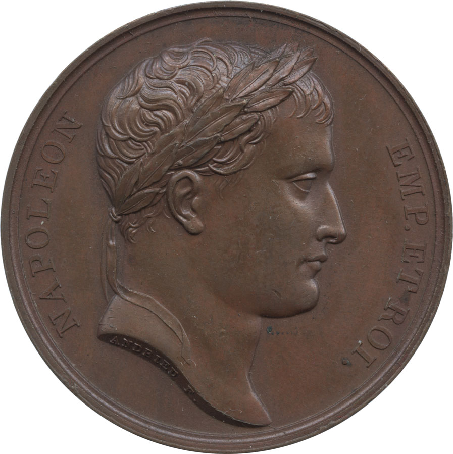このメダルは、フランス第一帝政期の1805年に、ナポレオン1世がウィーンのシュテファン大聖堂で行われたテ・デウム(感謝の賛歌)を記念して発行されました。オーステルリッツの戦いにおけるフランス軍の勝利の結果として行われたものです。