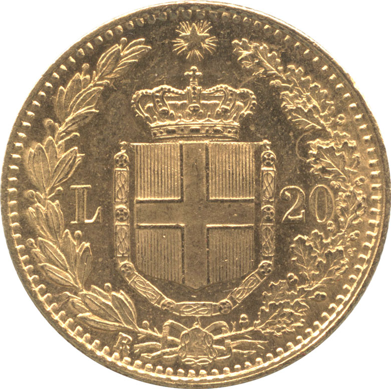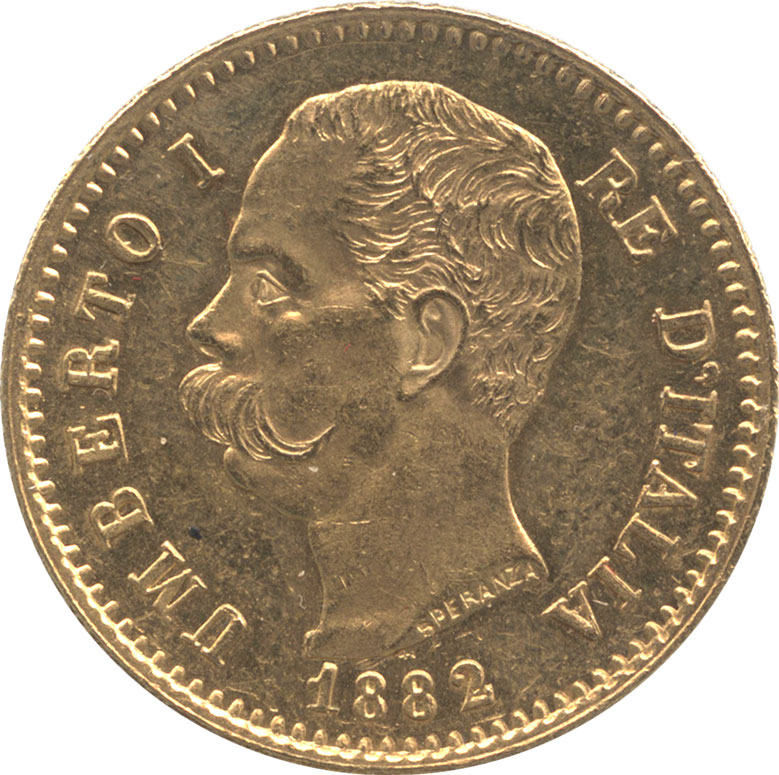 イタリア王国 20リレ金貨 1882(R) ウンベルト1世(1878-1900) 極美品+~未使用品