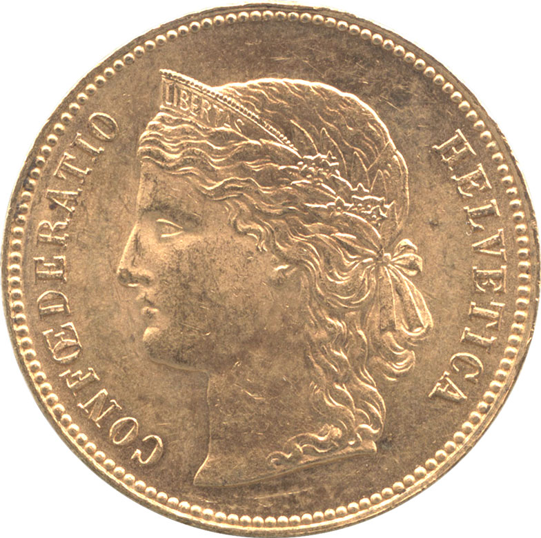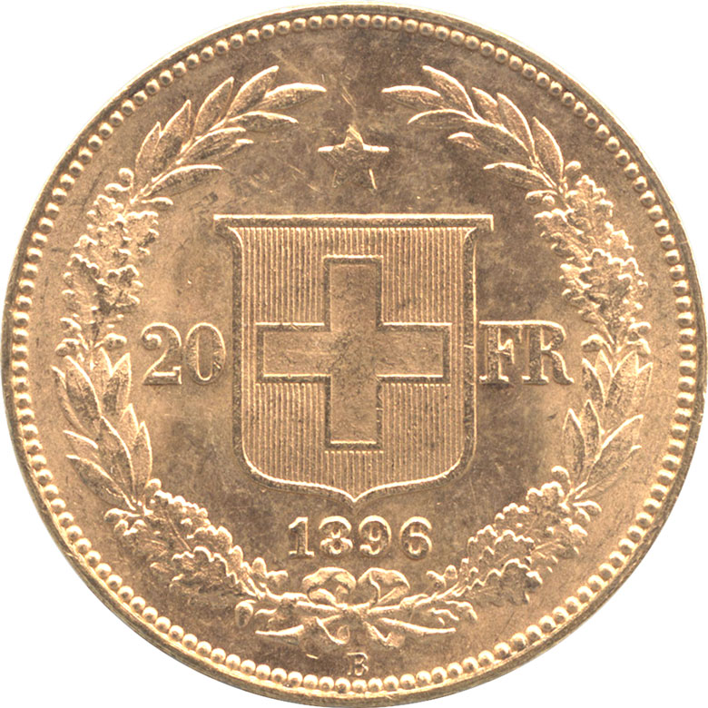 1896年スイス発行の20フラン金貨です。