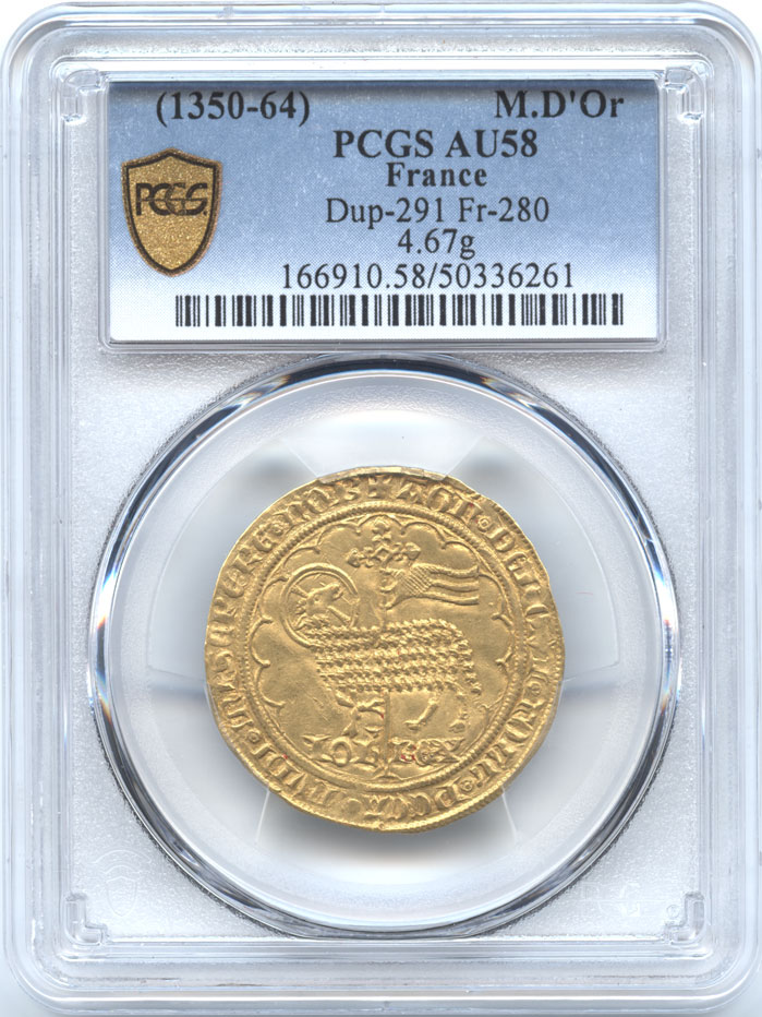 フランス ムートンドール N.D. ジャン2世(1350-1364) le Bon(善良王) PCGS-AU58 極美品