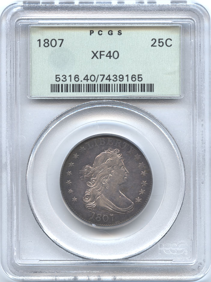 アメリカ 25セント銀貨 1807 ドレープドバスト PCGS-XF40