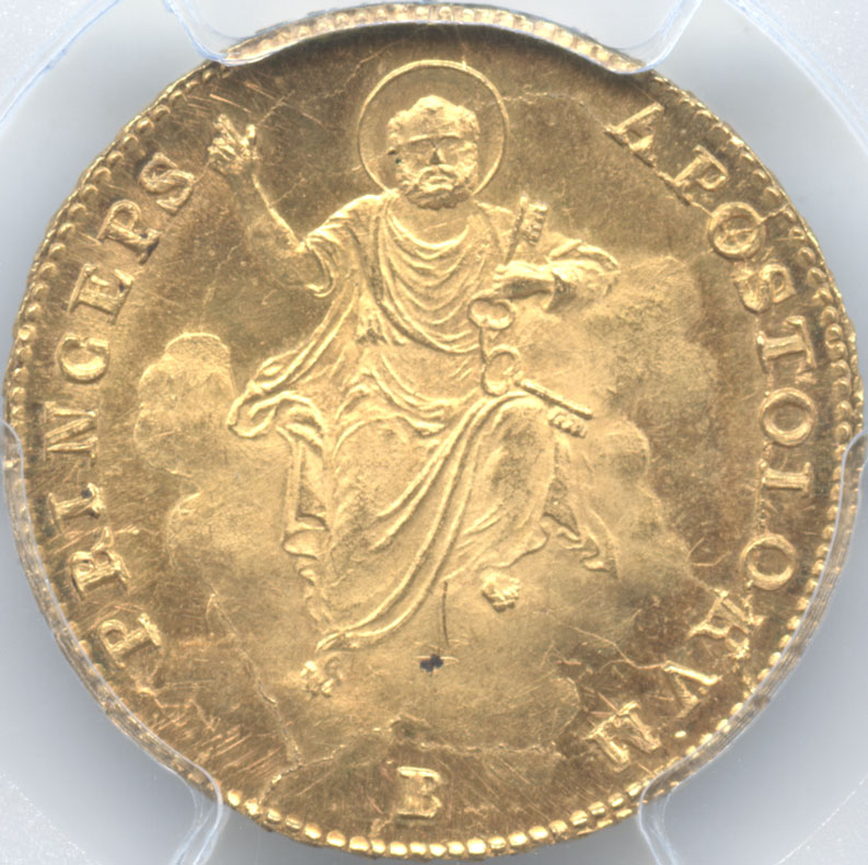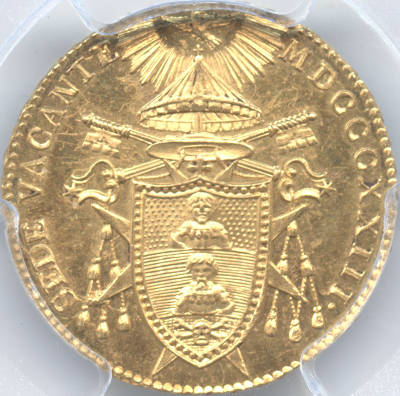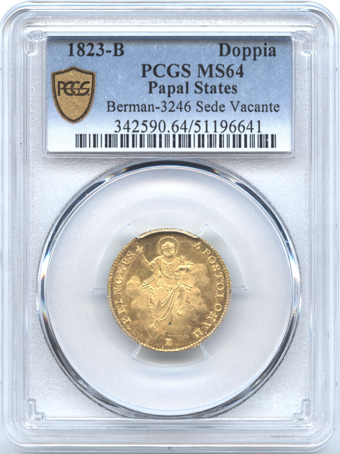 イタリア 教皇領 1ドッピア金貨 1823(B) セデ・ヴァカンテ(空位期) PCGS-MS64 【最高鑑定品】