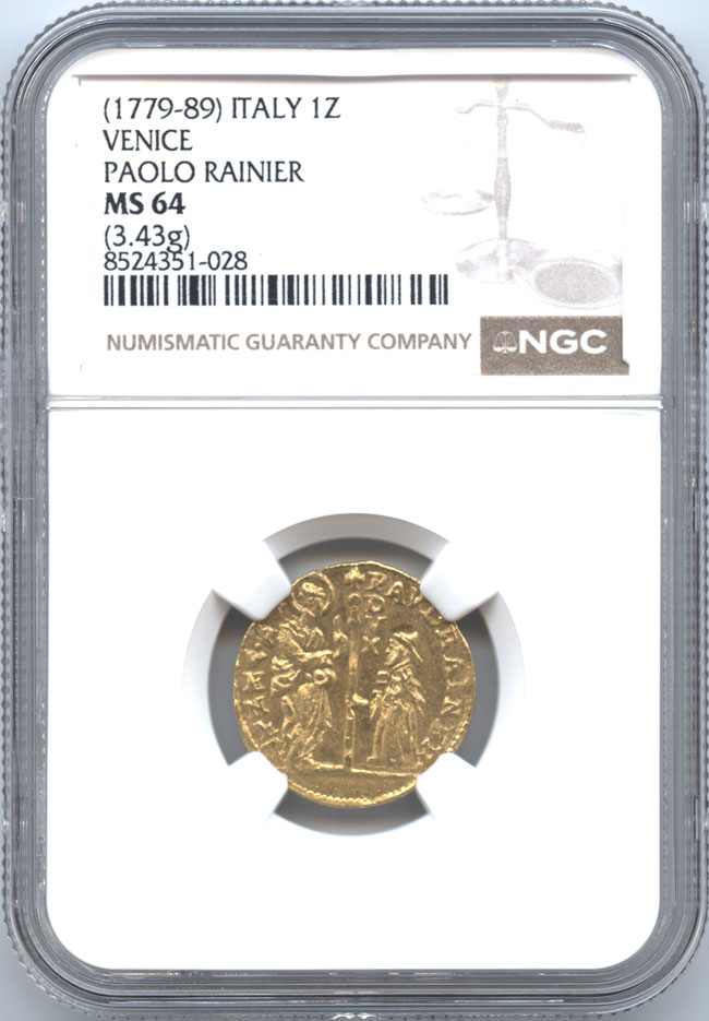 イタリア ヴェネツィア 1ゼッチーノ金貨 N.D. ヴェネツィアのドージェ(総督)パオロ・レーニア(1779 – 1789) NGC-MS64