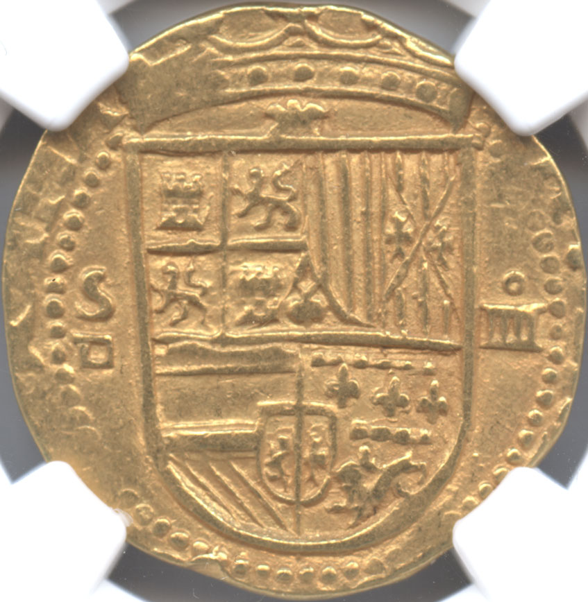スペイン 4エスクード金貨 N.D. フェリペ2世(1556-1598) NGC-AU55 極美品