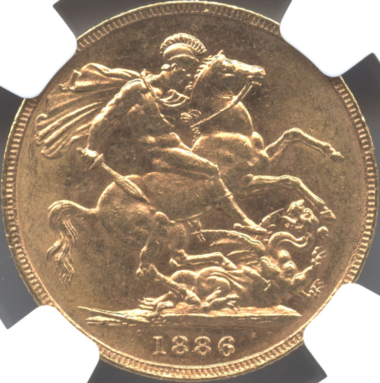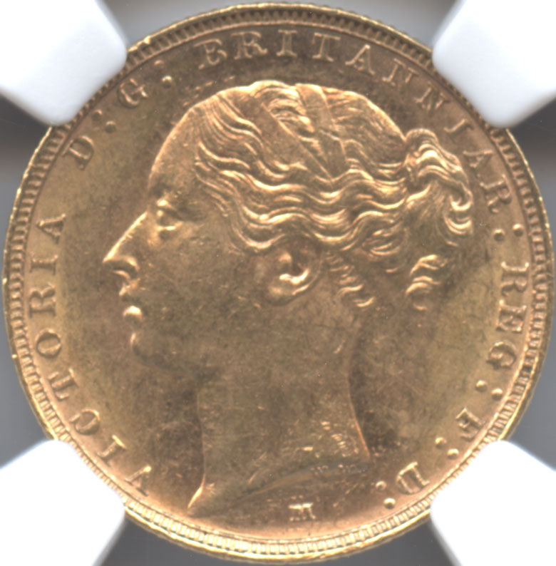 オーストラリア 1ソボレン金貨 1886(M) ヴィクトリア(1837-1901) ヤングヘッド NGC-MS62 準未使用~未使用品