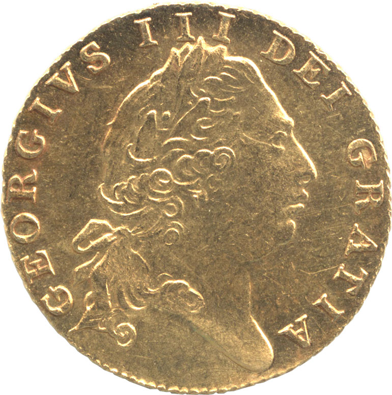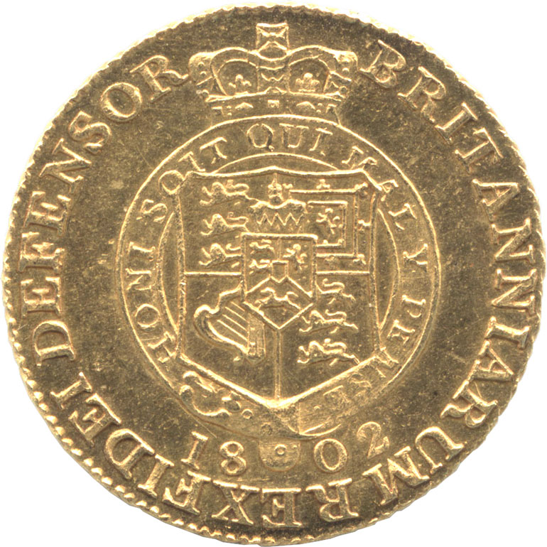 商品の1802年の1/2ギニー金貨はジョージ3世の第6肖像です。