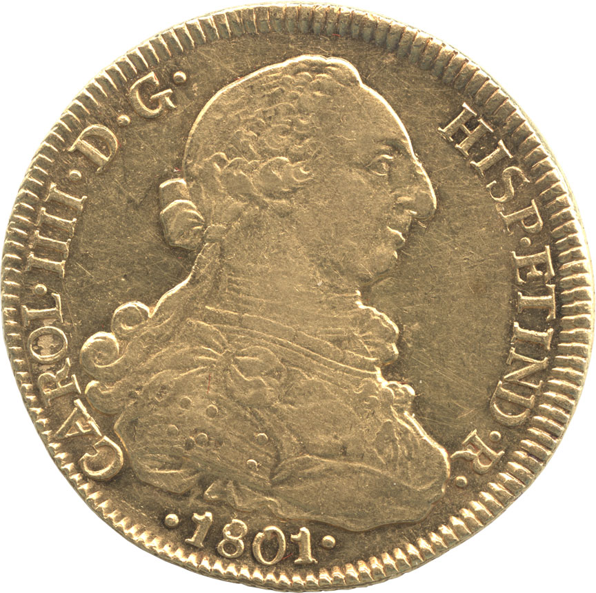 1801年チリ発行の8エスクード金貨です。