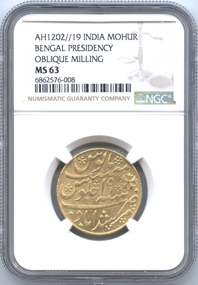 英領インド ベンガル管区 1モハール金貨 AH1202//19 (1788-1789) NGC-MS63