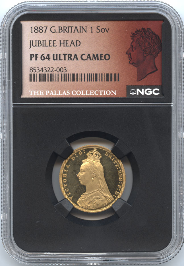 イギリス 1ソボレン金貨・プルーフ 1887 ヴィクトリア(1837-1901) ジュビリー NGC-PF64 ULTRA CAMEO プール・未使用品 【発行枚数797枚】
