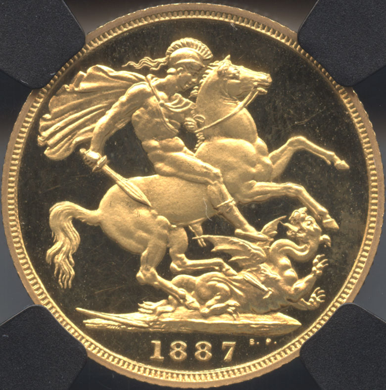 1887年イギリス発行の1ソボレン金貨・プルーフ(鏡面仕上げ)です。