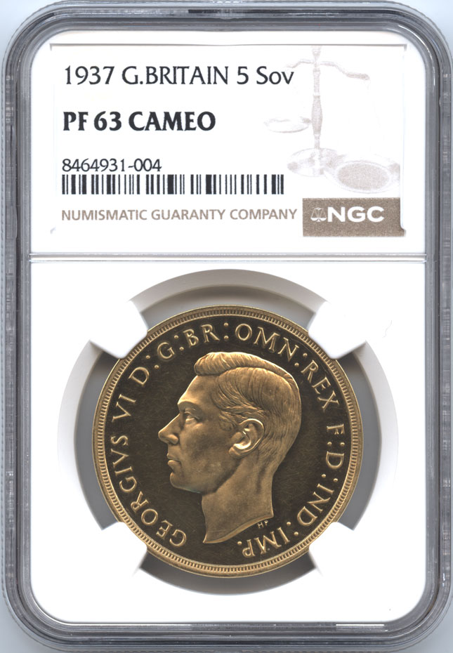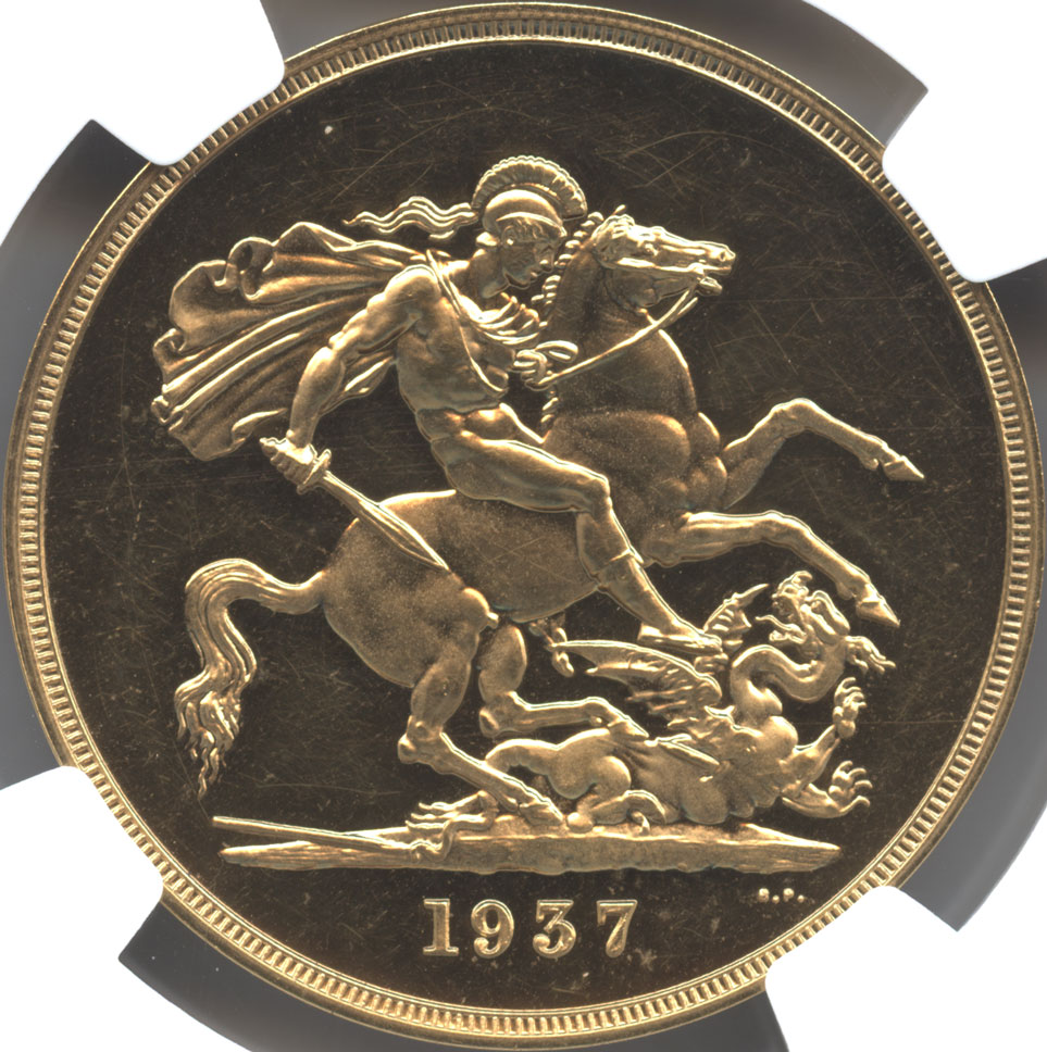 イギリス 5ポンド金貨 1937 ジョージ6世(1936-1952) NGC-PF63 CAMEO