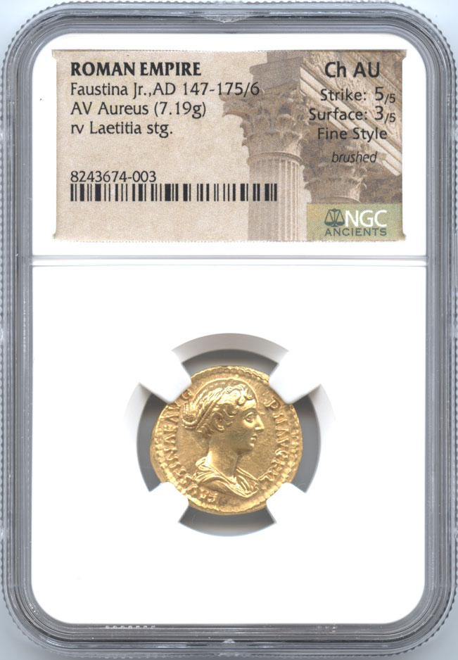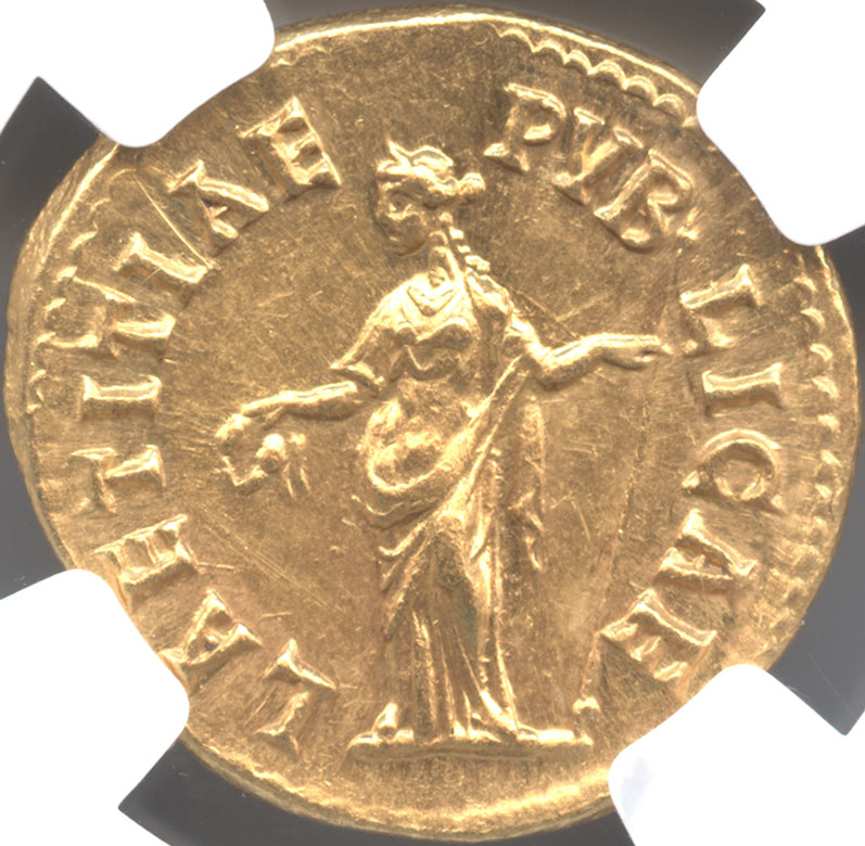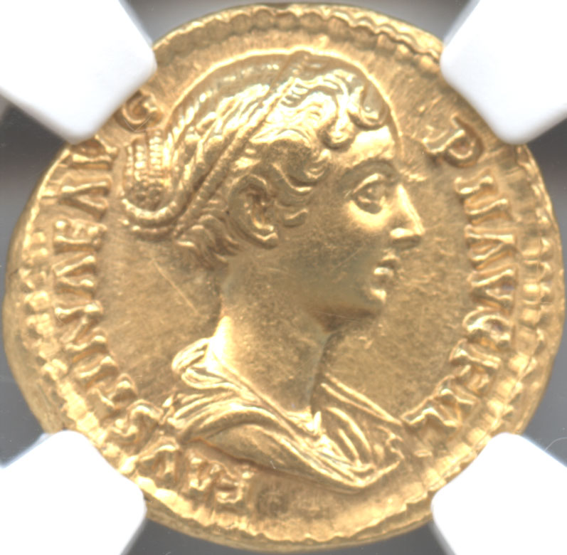 帝政ローマ アウレウス金貨 西暦147~175/6年発行 ファウスティナ・ミノル(五賢帝最後の一人皇帝マルクス・アウレリウスの妻) NGC-Ch AU