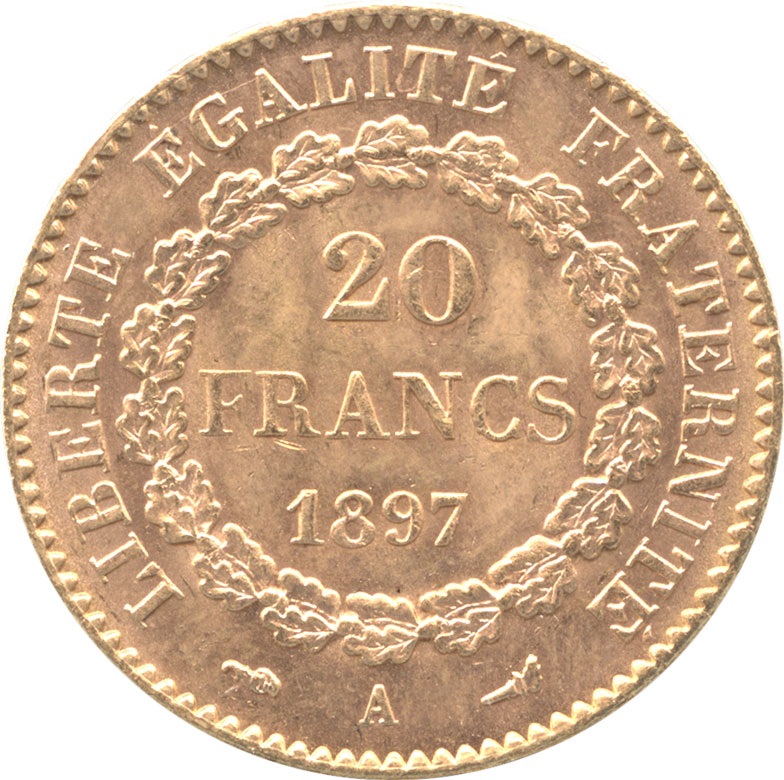 フランス 第三共和政 20フラン金貨 1897(A) エンゼル 極美品