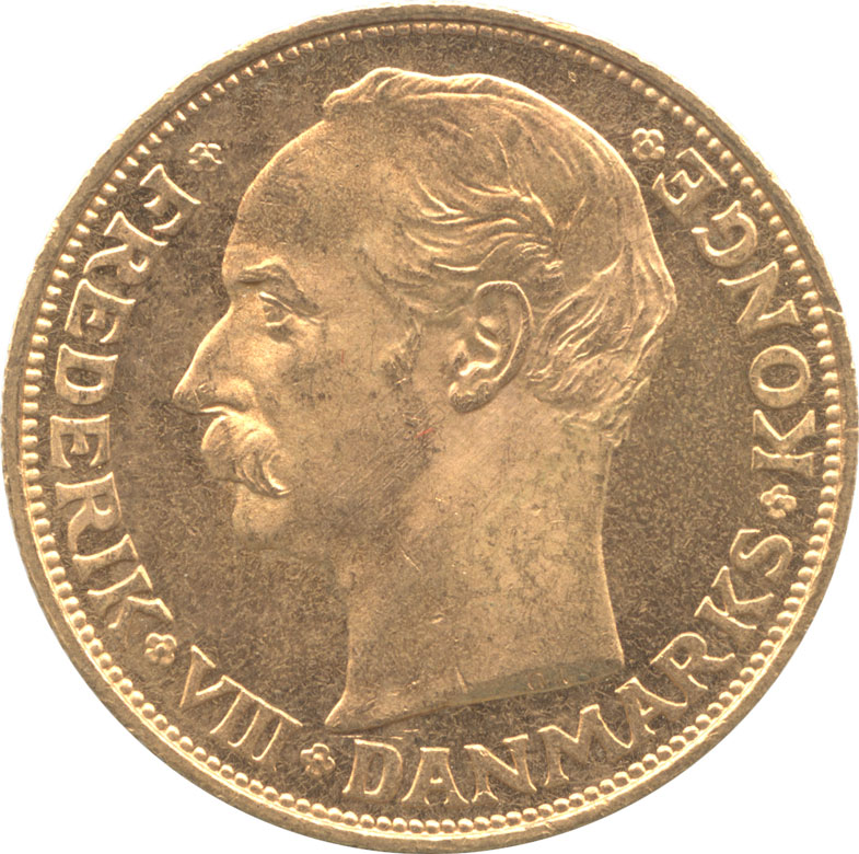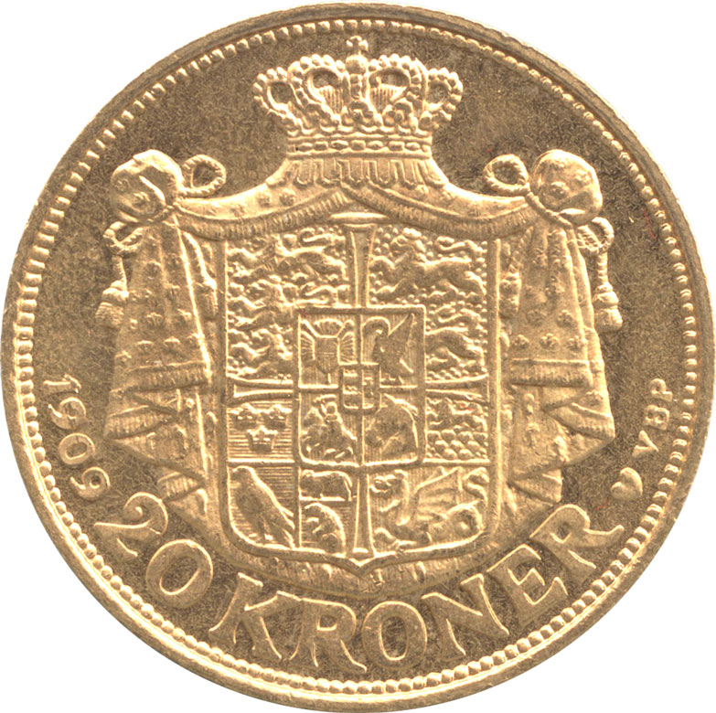 デンマーク 20クローネ 1909 フレデリク8世(1906-1912) 極美品