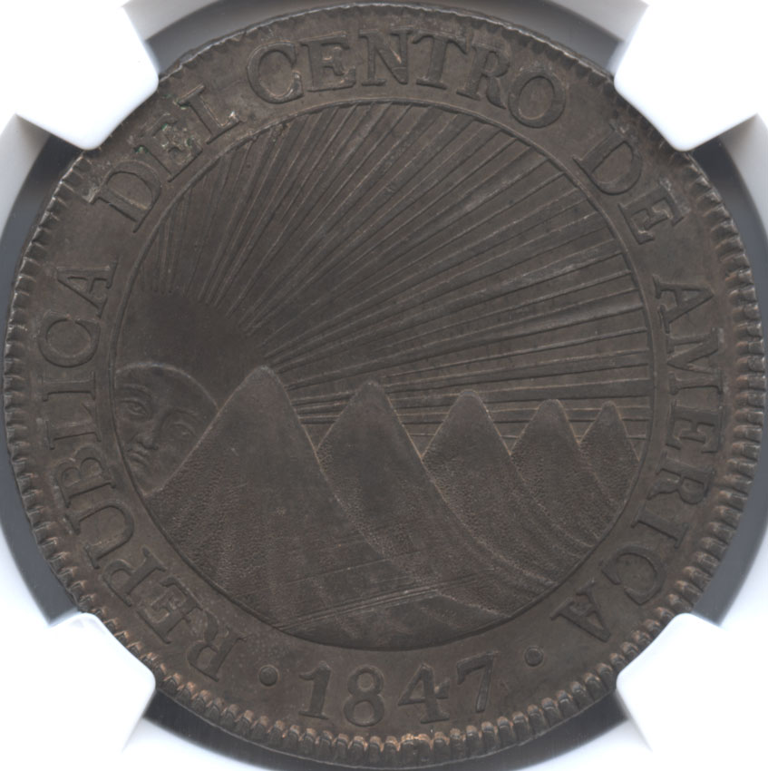 - セントラルアメリカ 8レアル銀貨 1847/6 山脈と太陽 NGC-MS62 準未使用