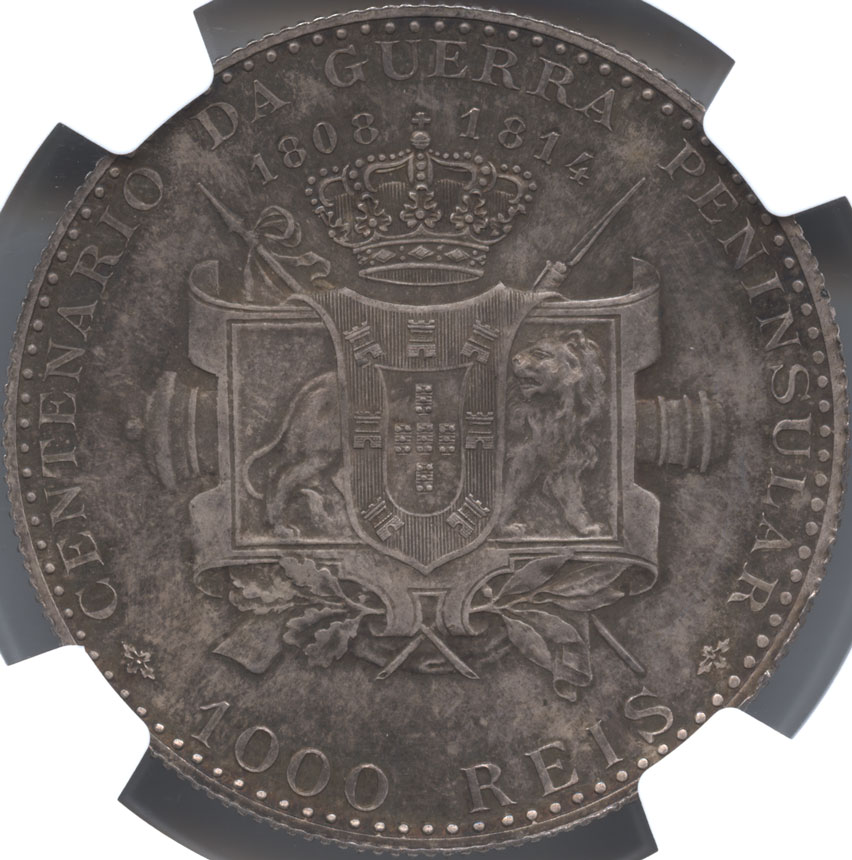 - ポルトガル 1000レイス銀貨 1910 半島戦争100年記念 ポルトガル王マヌエル2世(1908-1910) NGC-PF65 トーン・プルーフ・未使用品