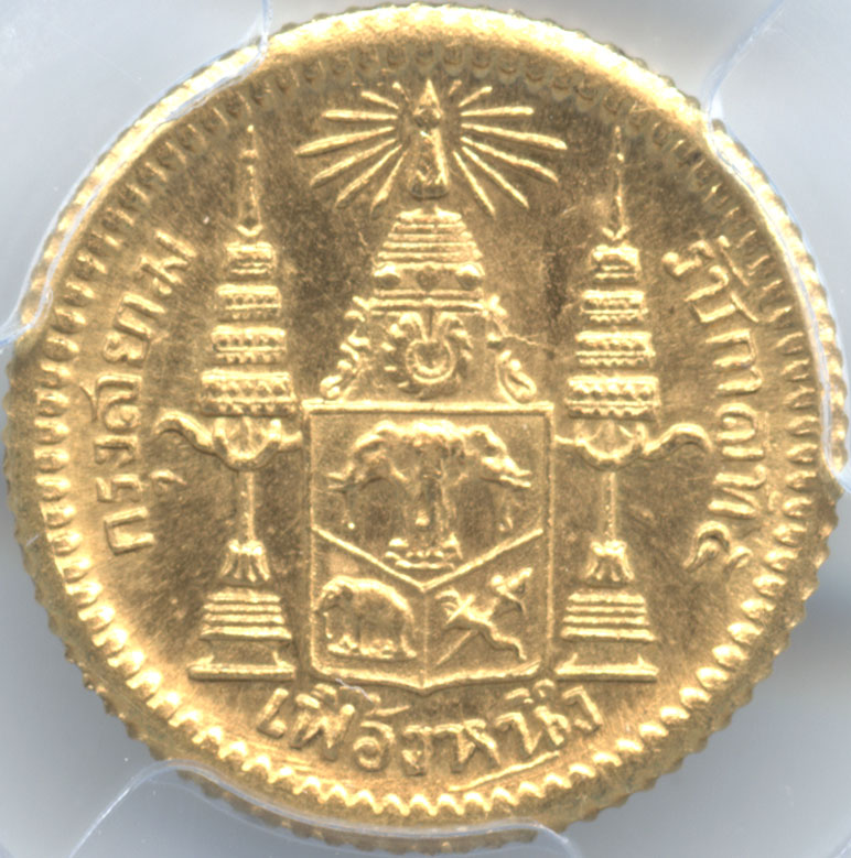 - タイランド 1ファング(1/8バーツ)金貨 N.D.(1876) ラーマ5世(1868-1910) PCGS-MS63 未使用品