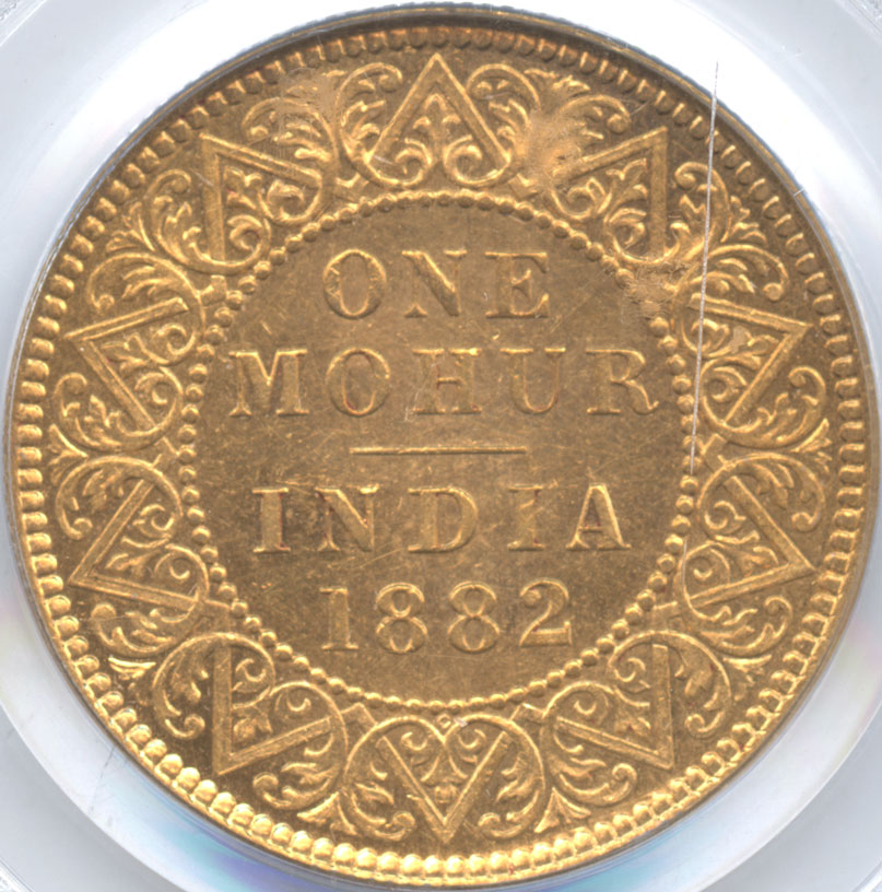 - 英領インド 1モハール金貨 1882 ヴィクトリア(1837-1901) PCGS-AU55 極美品
