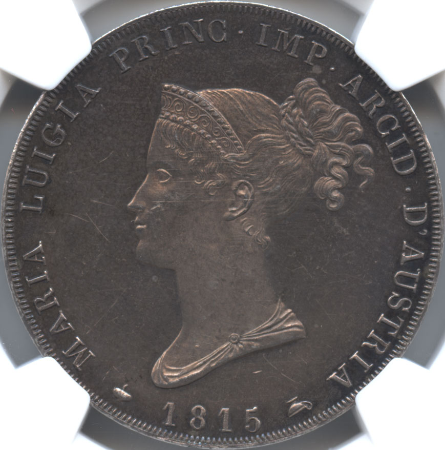 - イタリア パルマ 5リレ銀貨 1815 マリー・ルイーズ(1815-1847) NGC-MS61 トーン・極美+~未使用品