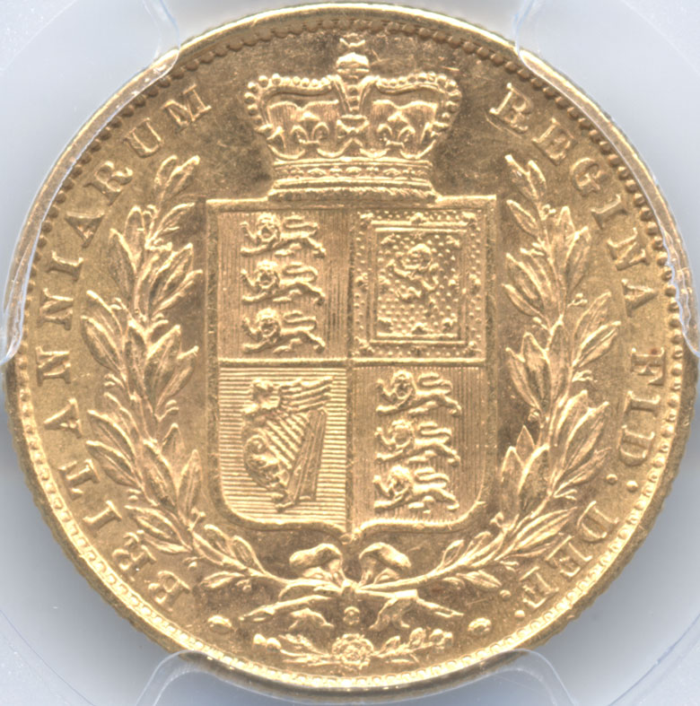 - イギリス 1ソボレン金貨 1865 ヴィクトリア(1837-1901) ヤングヘッド Die.No.8 PCGS-AU58 極美品