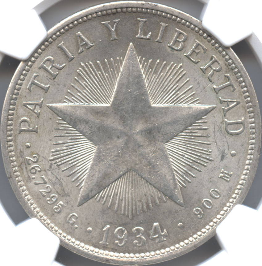 - キューバ 1ペソ銀貨 1934 スターペソ NGC-MS63 未使用品