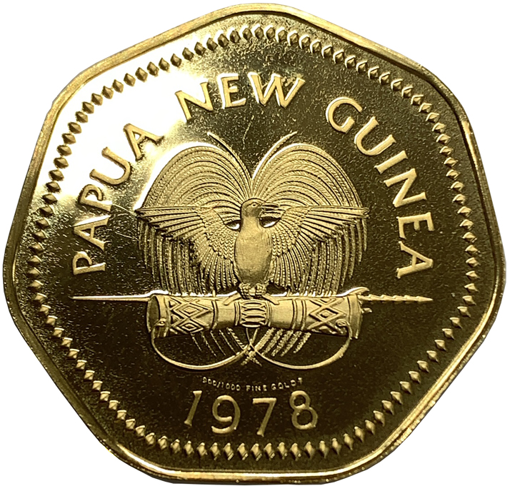 商品は1978年にパプアニューギニアで発行された100キナ金貨です。