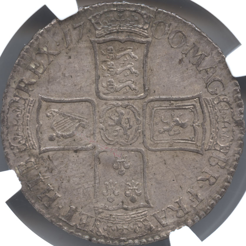- イギリス 1/2クラウン銀貨 1700 ウィリアム3世(1694-1702) NGC-MS63 未使用品