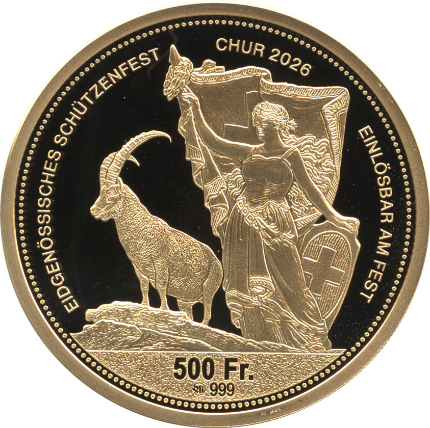 - 【2026年射撃祭記念】 スイス クール射撃祭 500フラン金貨 2026 プルーフ・完全未使用品 保証書・オリジナルケース付き 【発行枚数150枚の希少品】