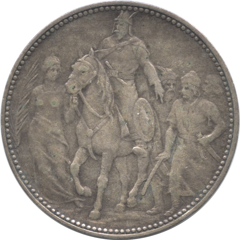 表面に聖イシュトヴァーンの王冠を戴いたフランツ・ヨーゼフ1世胸像、裏面にハンガリーの征服者たちが馬に乗っている様子が描かれています。