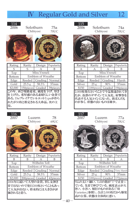 1984年から始まった現代射撃祭シリーズの通常貨から試作貨まで写真のみならず収集難度まで掲載された素晴らしい書籍となります。まさに現代射撃祭コイン収集のバイブル。